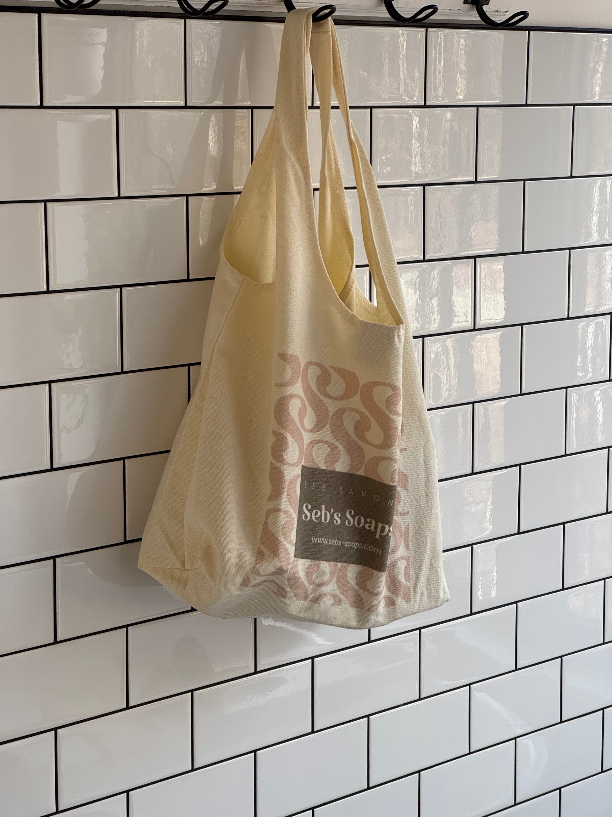 Exclusive to Seb’s Soaps, this 100% organic cotton tote bag combines practicality with style. Featuring durable handles and a magnetic closure, it’s perfect for carrying your essentials or storing your favorite Seb’s Soaps products. Eco-friendly and reusable, it’s designed to elevate your daily errands while keeping sustainability in mind.